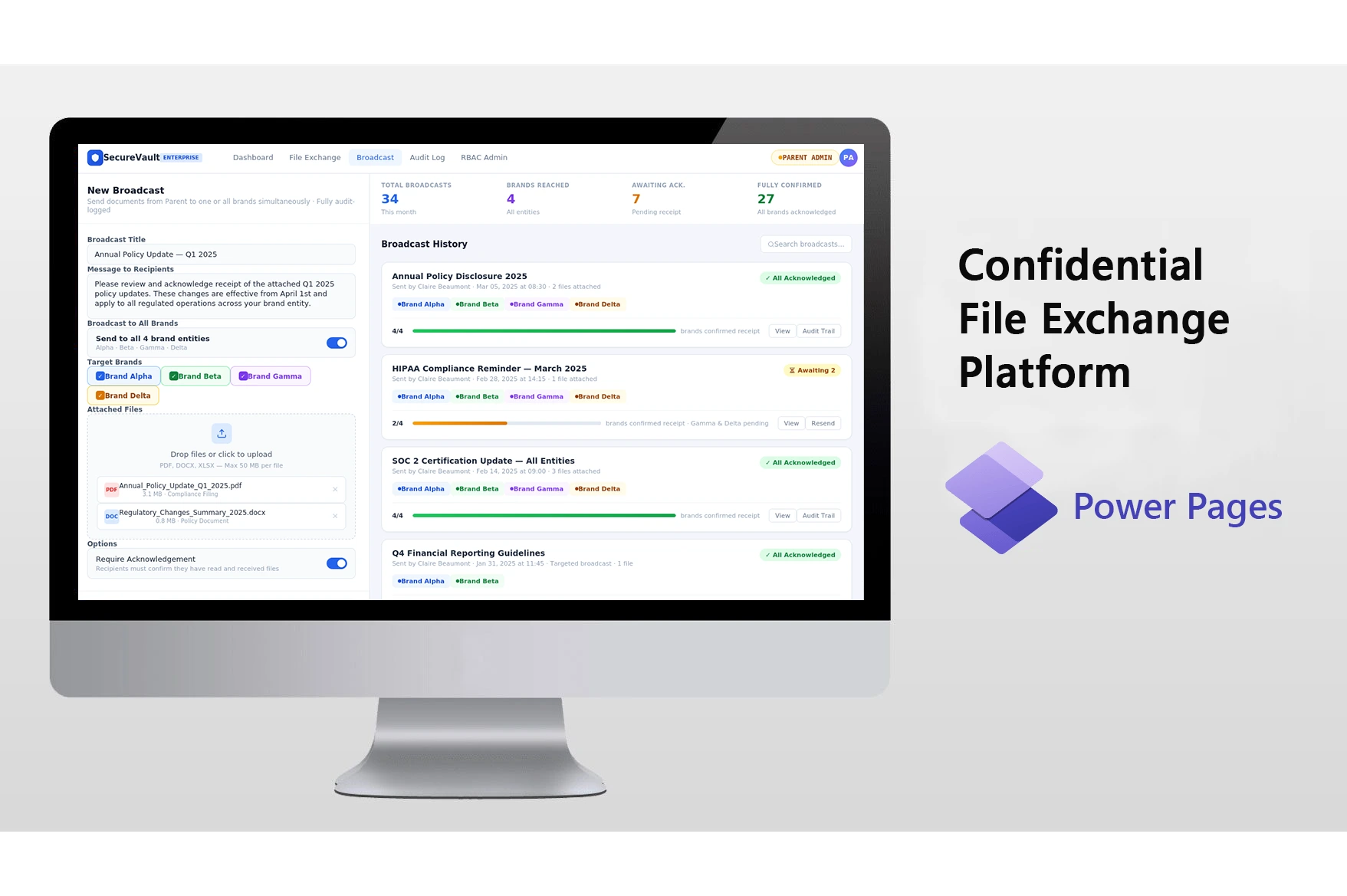 Portfolio Confidential File Exchange Platform A multi-brand parent organization in regulated sectors — handling medical records, financial data, and compliance
